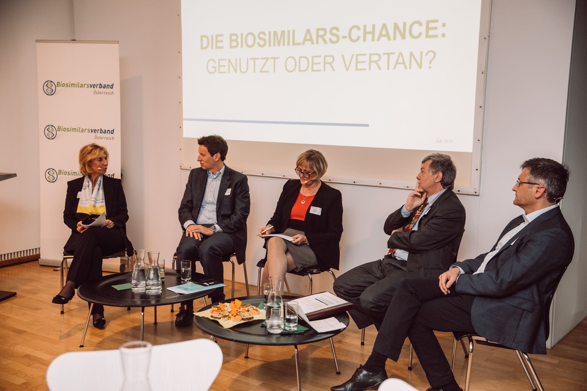 Am 10. Oktober 2019 lud der Biosimilarsverband Österreich eine Expertenrunde aus Pharma und Medizin zu einer spannenden Diskussion in die Mumok Lounge. Am Podium diskutierten Dr. Sabine Möritz-Kaisergruber (Biosimilarsverband Österreich), Dr. Mathias Flume (Kassenärztliche Vereinigung Westfalen-Lippe), Prim. Dr. Johann Hitzelhammer (ärztl. Leiter des Gesundheitszentrums Mariahilf der Wiener Gebietskrankenkasse) und Univ. Prof. Dr. Clemens Dejaco (Stv. Leiter und stationsführender Oberarzt an der Abteilung Gastroenterologie und Hepatologie der Universitätsklinik Innere Medizin III, MUW, AKH Wien) unter der Moderation von Mag. Claudia Dannhauser (ORF) zum Thema „Die Biosimilars-Chance: Genutzt oder vertan?“. Dabei gaben die Experten Einblicke in aktuelle Entwicklungen zum Thema Biosimilars aus unterschiedlichen Perspektiven.
