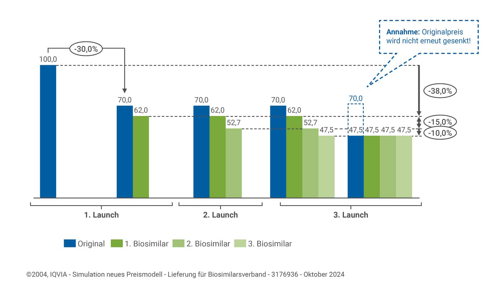 Simulation einer angepassten Preisregelung mit Ausbleiben der zweiten Preissenkung des Originals bei Biosimilars-Launch: